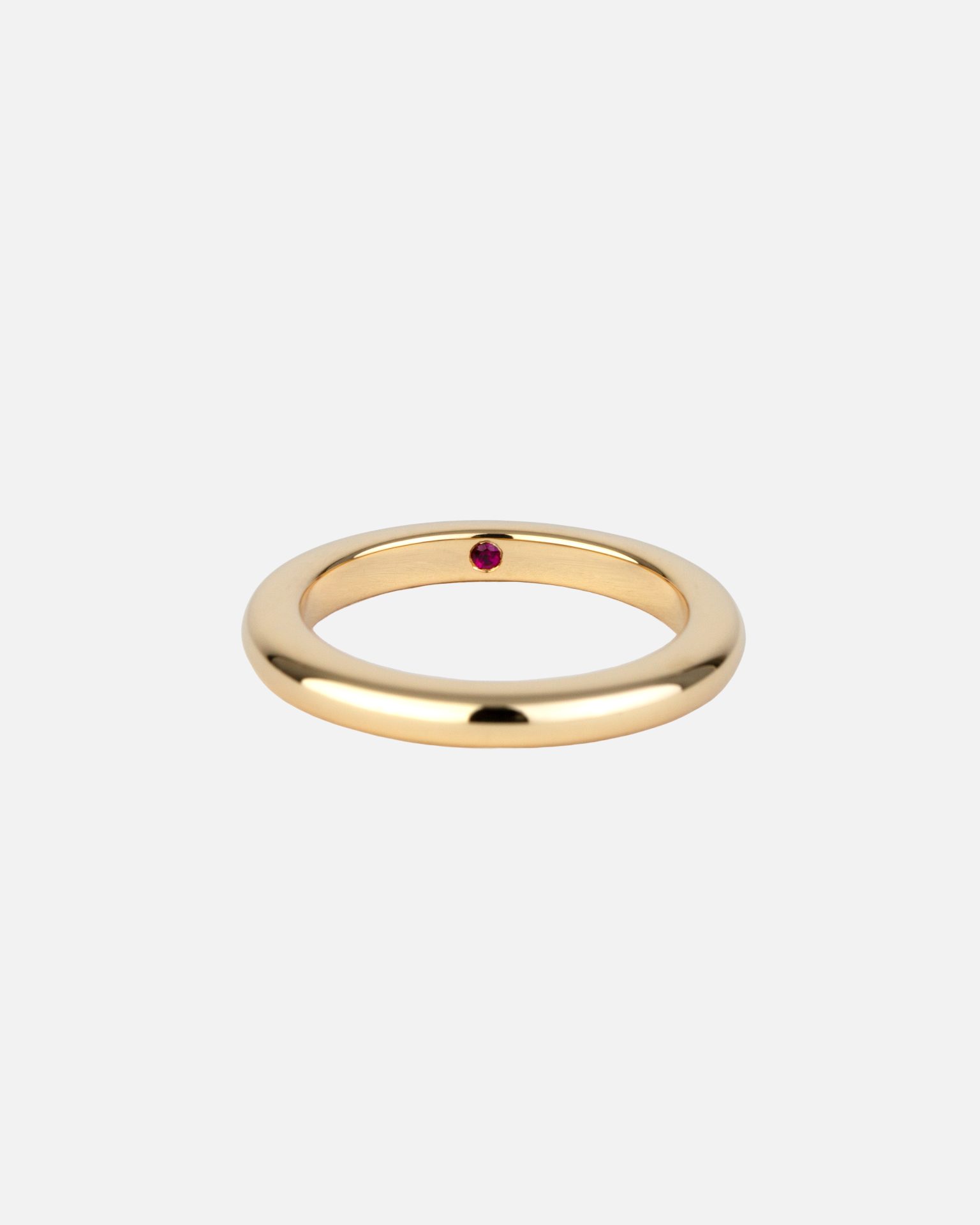 This elegant gold wedding ring set with a pigeon’s blood ruby stands out for its intense red colour and unrivalled brilliance. The ‘pigeon’s blood’ ruby is considered the most valuable in the world.