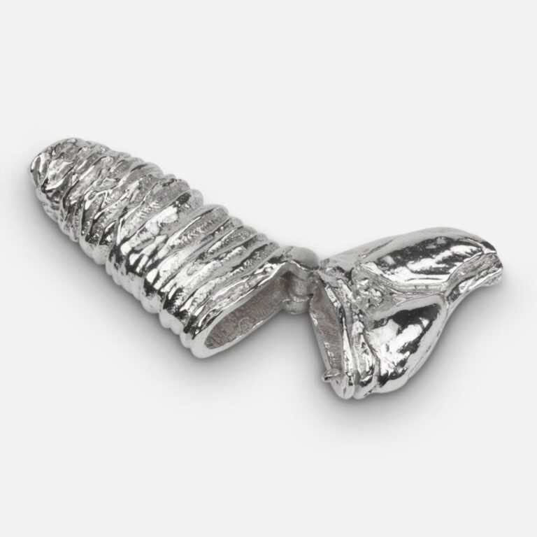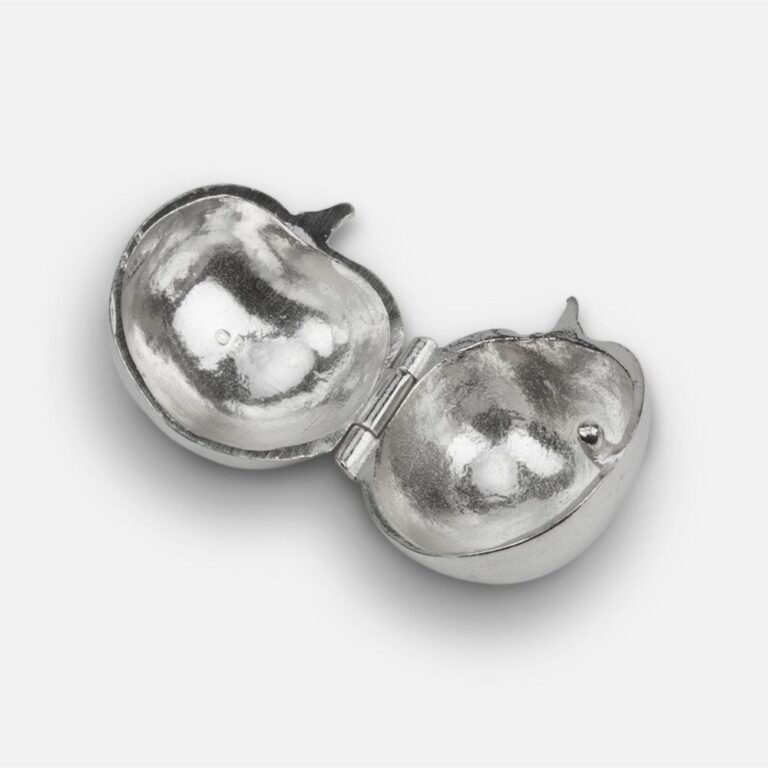 Uma peça em prata manufaturada nas nossas oficinas centenárias, onde através de uma salva de base circular se dá o formato geométrico através de um longo processo de moldagem, aquecimento e arrefecimento. O trabalho manual dá a esta peça uma personalidade e identidade únicas.
